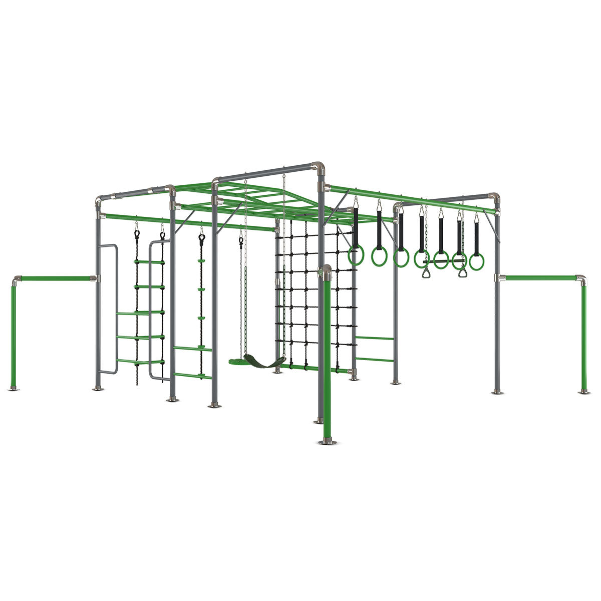 Transform your backyard into an action-packed playground with the Junior Jungle Kakadu. Little ones can test their climbing abilities on the climbing rope, rung ladder and net, or tackle the double monkey bars to challenge their mobility skills. Reach for the sky on the belt swing and monkey swing, or practice gymnastics skills on the trapeze bar and gym rings. This backyard wonderland is sure to keep little ones outdoors playing all day.