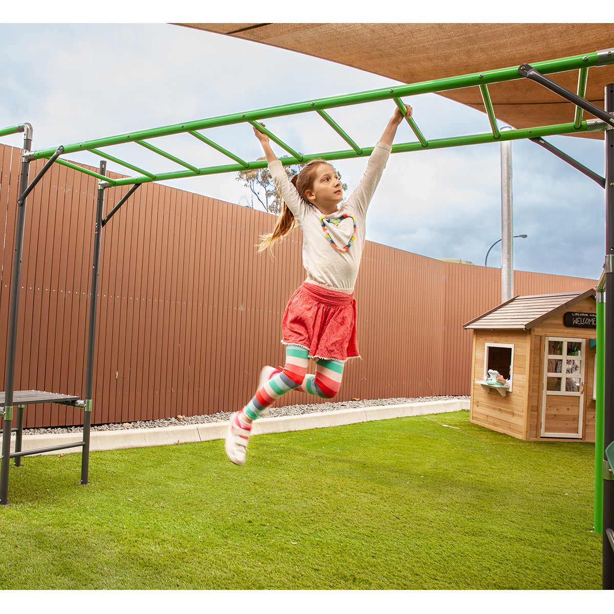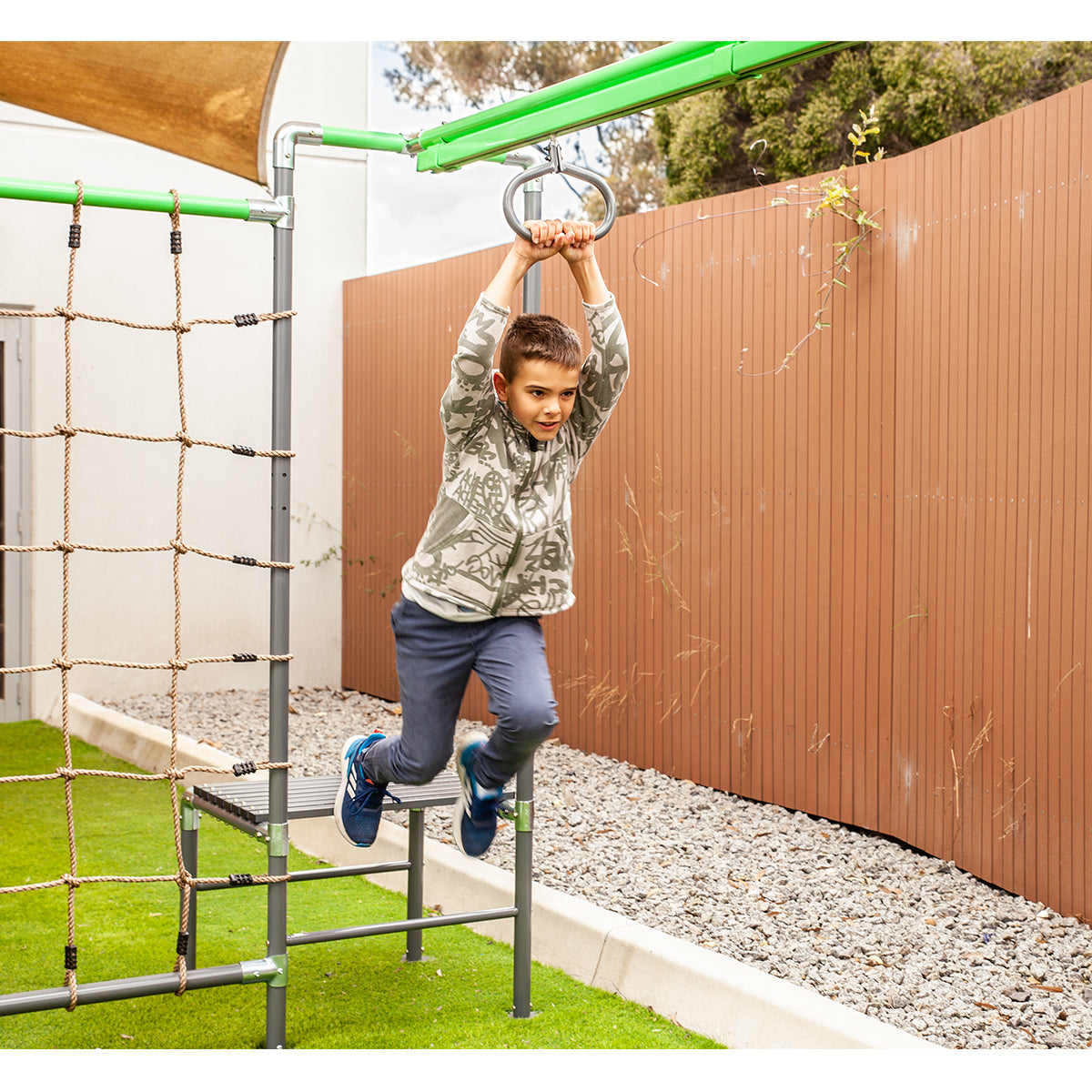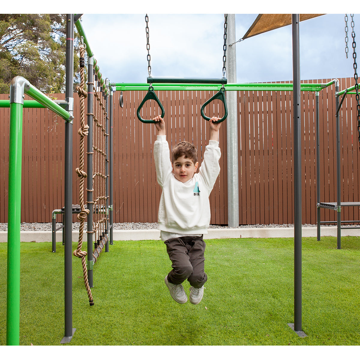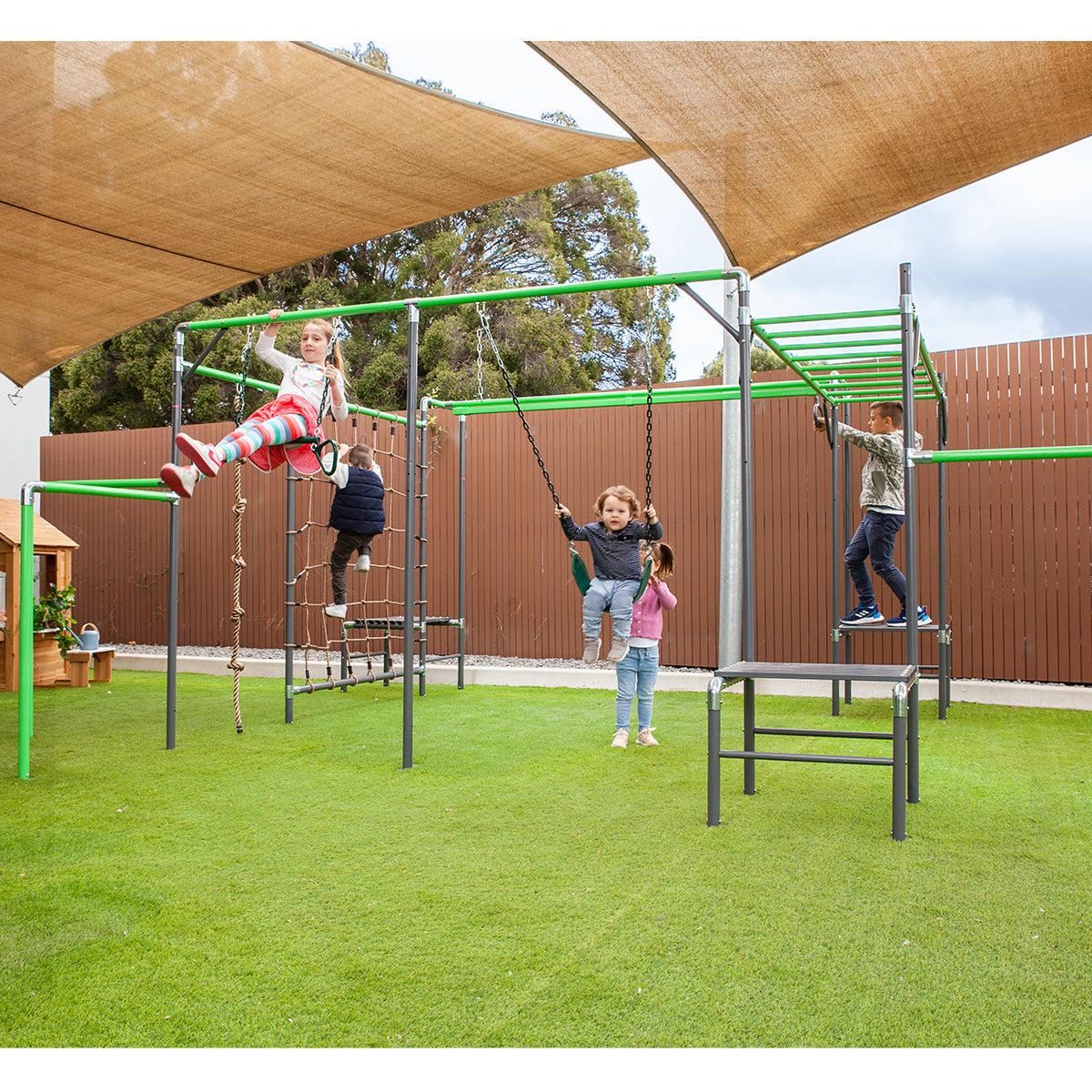 The Junior Jungle Madgascar has it all - the ultimate play centre! Your little ones can experience the thrill of zipping through the air at full speed with the 2.6m flying fox. Explore the challenging climbing rope and net to get your adventurer active outdoors. Build their mobility skills with our two climbing obstacles. Touch the sky in our swing set, perfect for three littles ones. Take turns being an acrobat on our trapeze and learn new tricks!